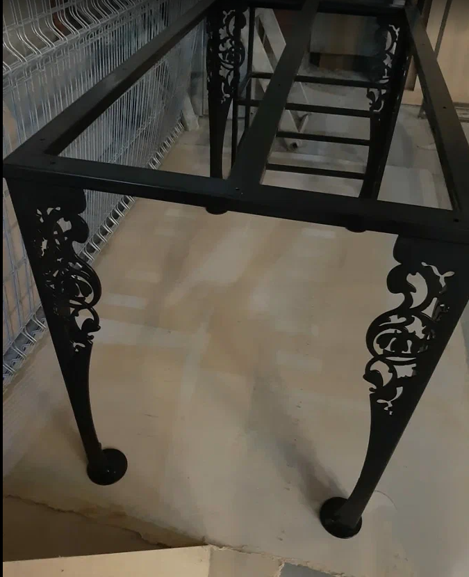 Подстолье резное выполнено из профиля 40*20 и листового металла толщиной 5мм.