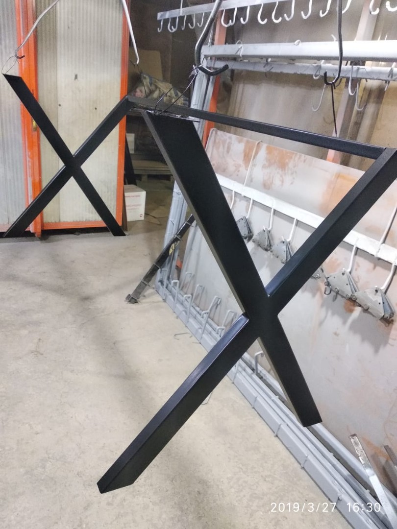 Подстолье из металла "X" - стильное и массивное подстолье в стиле "Лофт", ножки подстолья сделаны в виде буквы X из профиля 60*30 мм. Подстолье имеет габариты 1500*500*750мм. Подстолье окрашивается порошковой краской черного цвета. По запросу возможна окраска в любой цвет по каталогу РАЛ